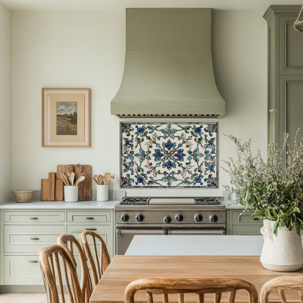 Ceramic Painting Look One Piece Tempered Glass Kitchen Splashback For Stove Behind, Kitchen Backsplash, Wall Art